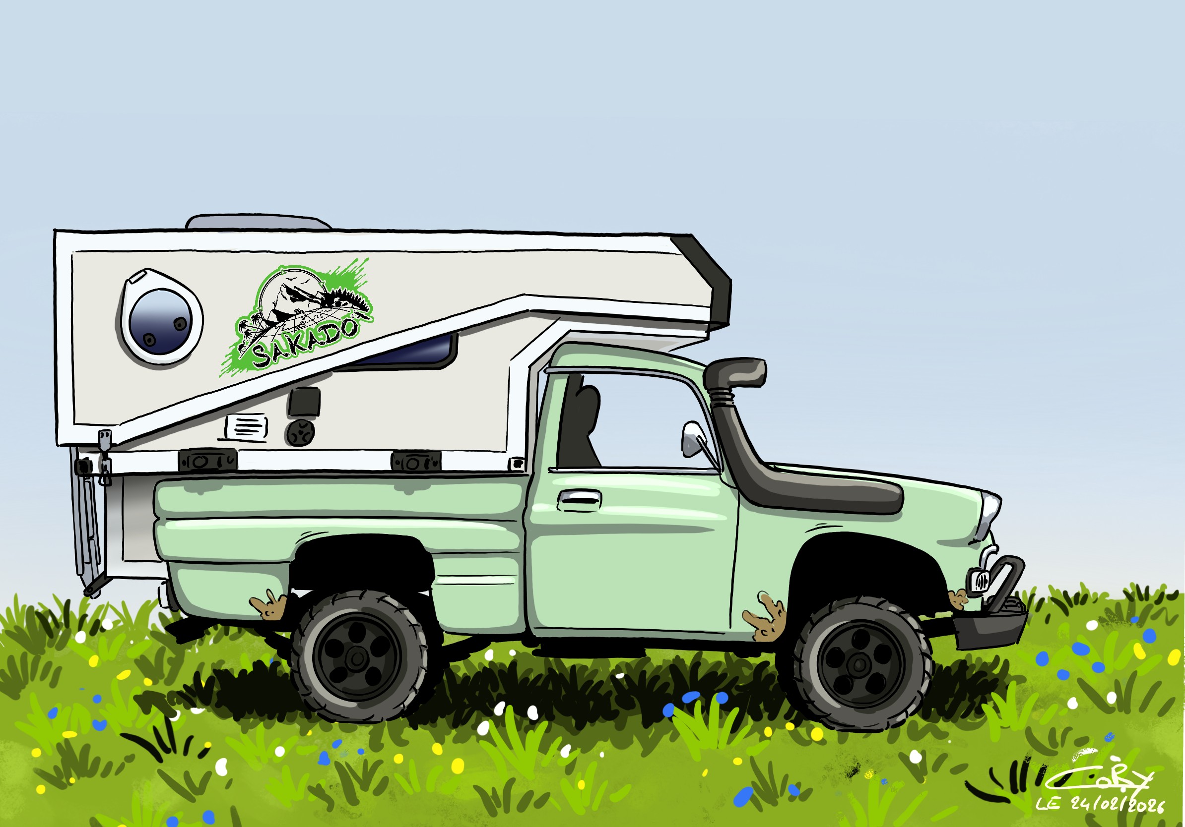Gus a choisi une cellule Sakado Delta avec intérieur V2, pour l’installer sur son pick-up classique simple cab préparé avec soin pour l’aventure off-road. Avec cette cellule tout confort, il est paré pour voyager dans l’univers plein de surprises de passe-partout