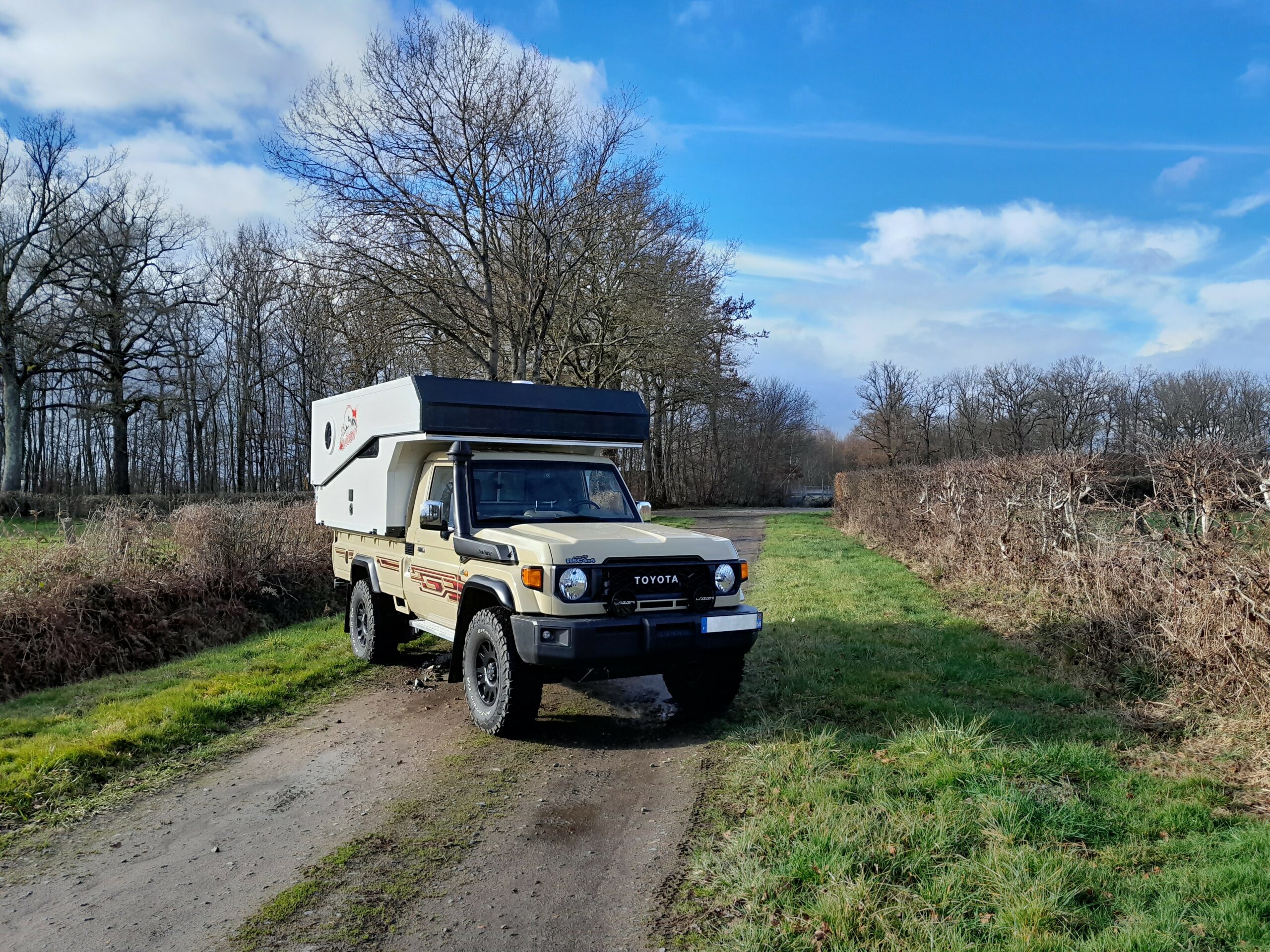 Un auvent et des plaques de désensablage viennent se positionner à l’arrière du capot.
