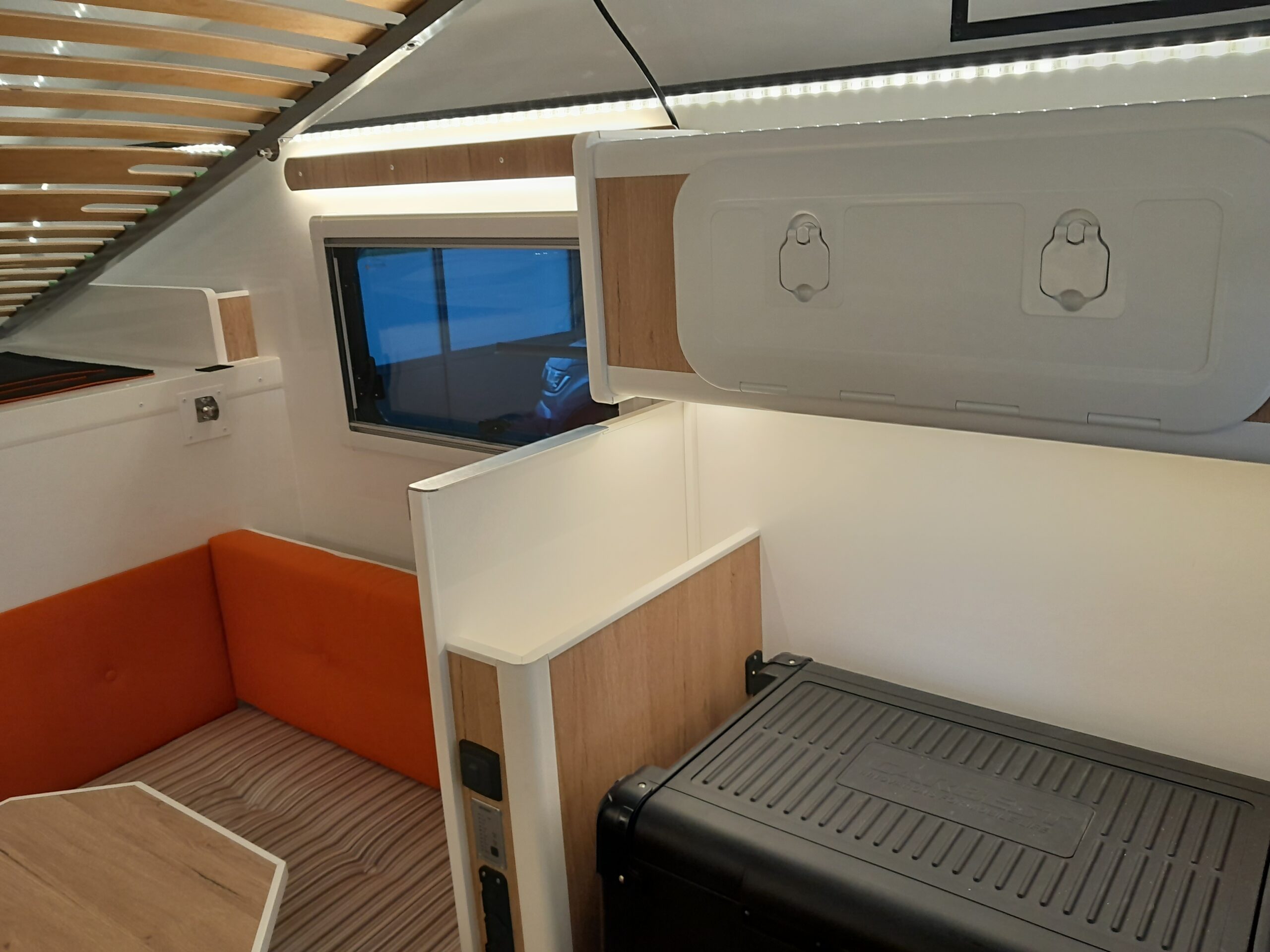 Un intérieur chaleureux et bien pensé a permis d’optimiser les rangements, qui faciliteront les voyages au long cours.